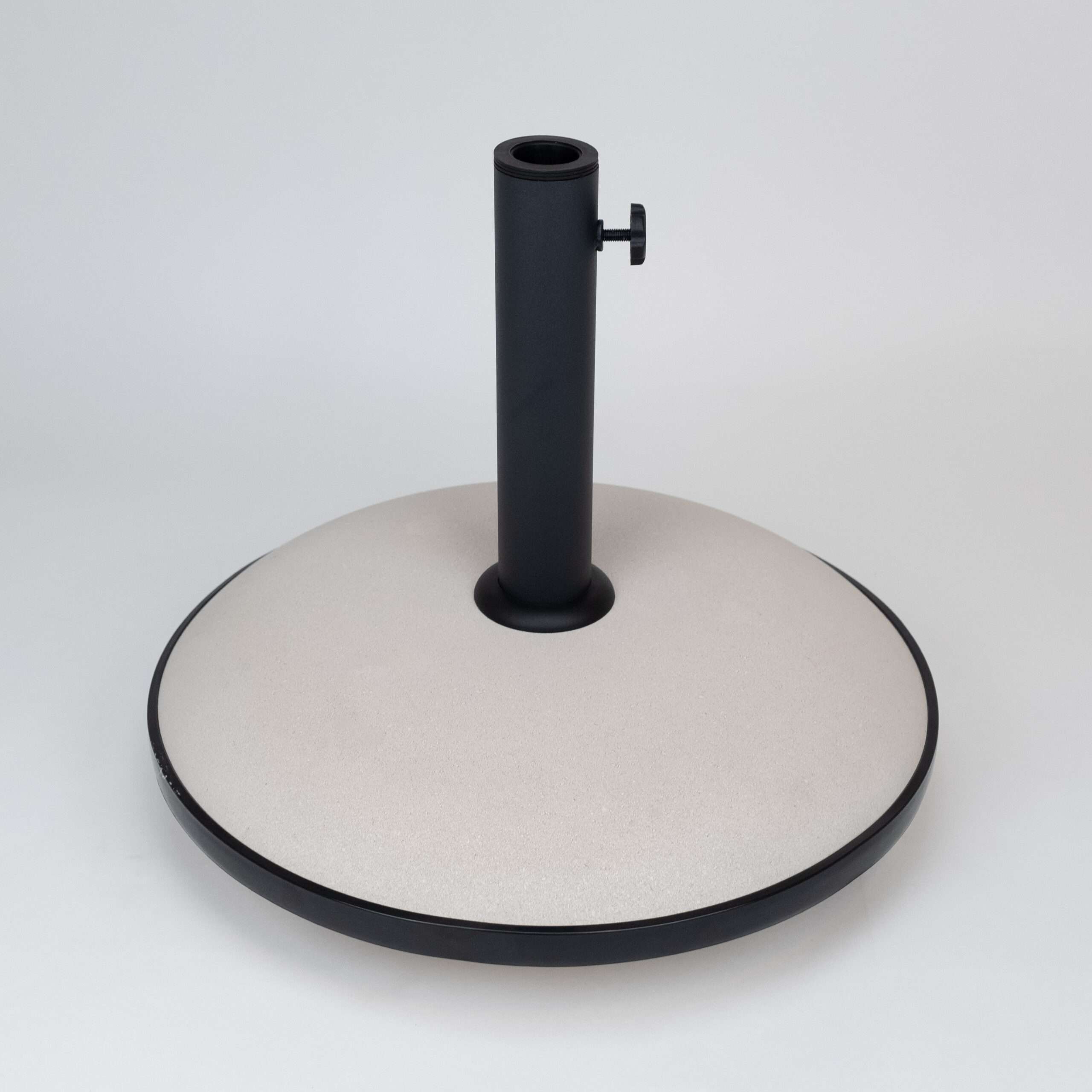 Our economical solid concrete bases are available in four finish colors and have a protective black sleeve and trim. Works best under the table. Available without wheels only.