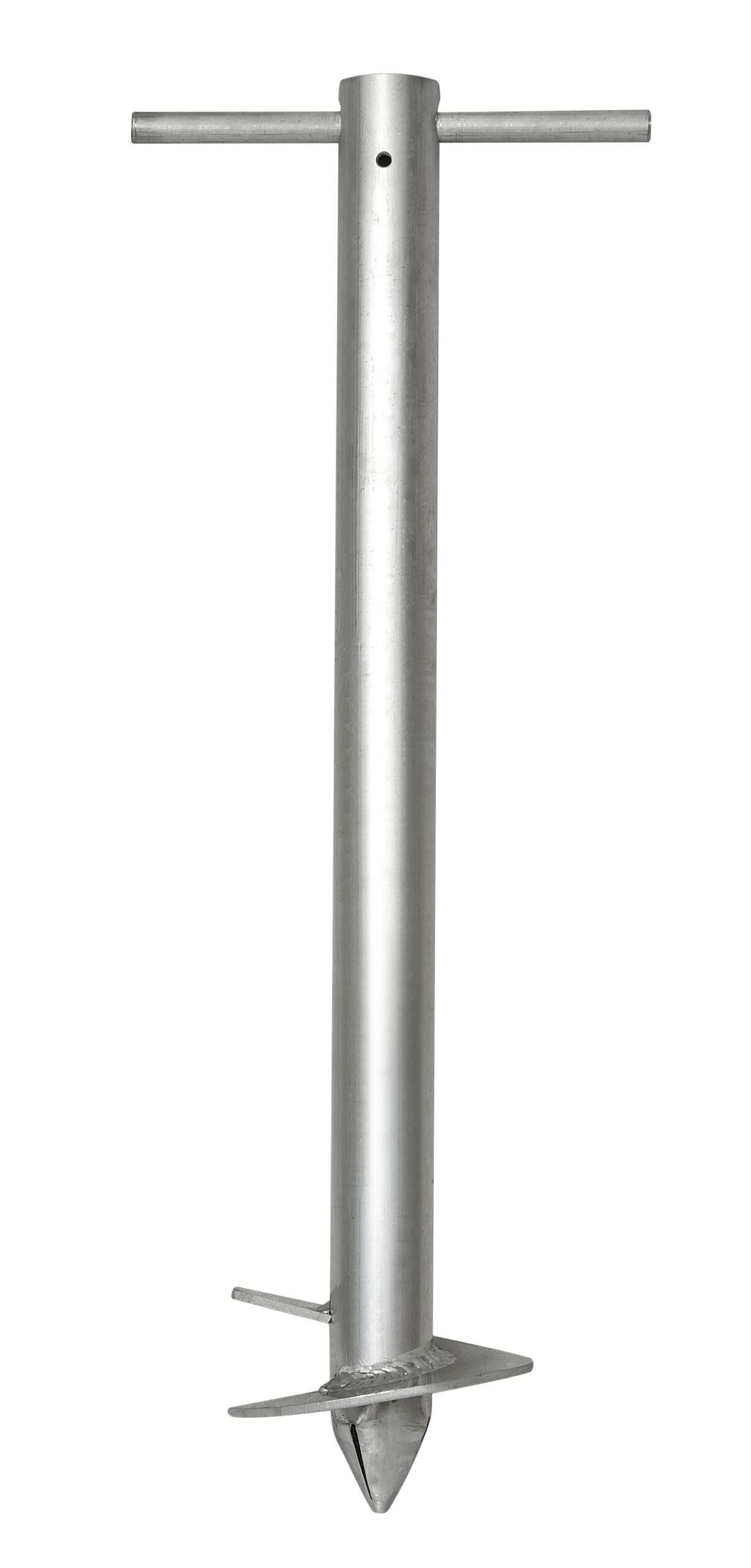 - Auger anchors umbrella into beach sand or dirt and provides housing for umbrella pole