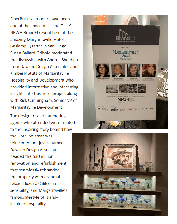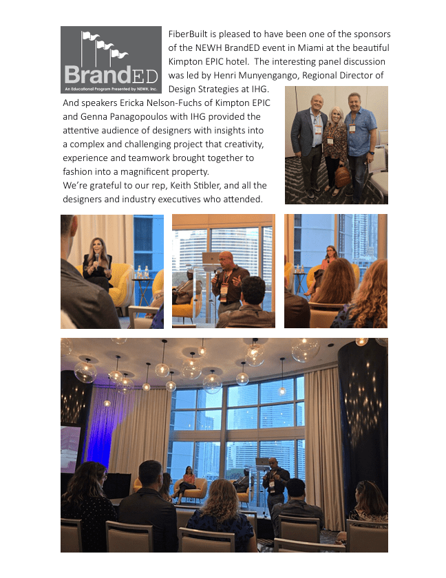 FiberBuilt is proud to be a sponsor of NEWH’s BrandED events.  This educational evening was well attended by designers and other industry professionals eager and enthusiastic to engage with colleagues and collect new ideas.