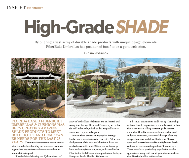 FIBERBUILT UMBRELLAS & CUSHIONS GRANTED PATENT FOR THE FLIGHT UMBRELLA